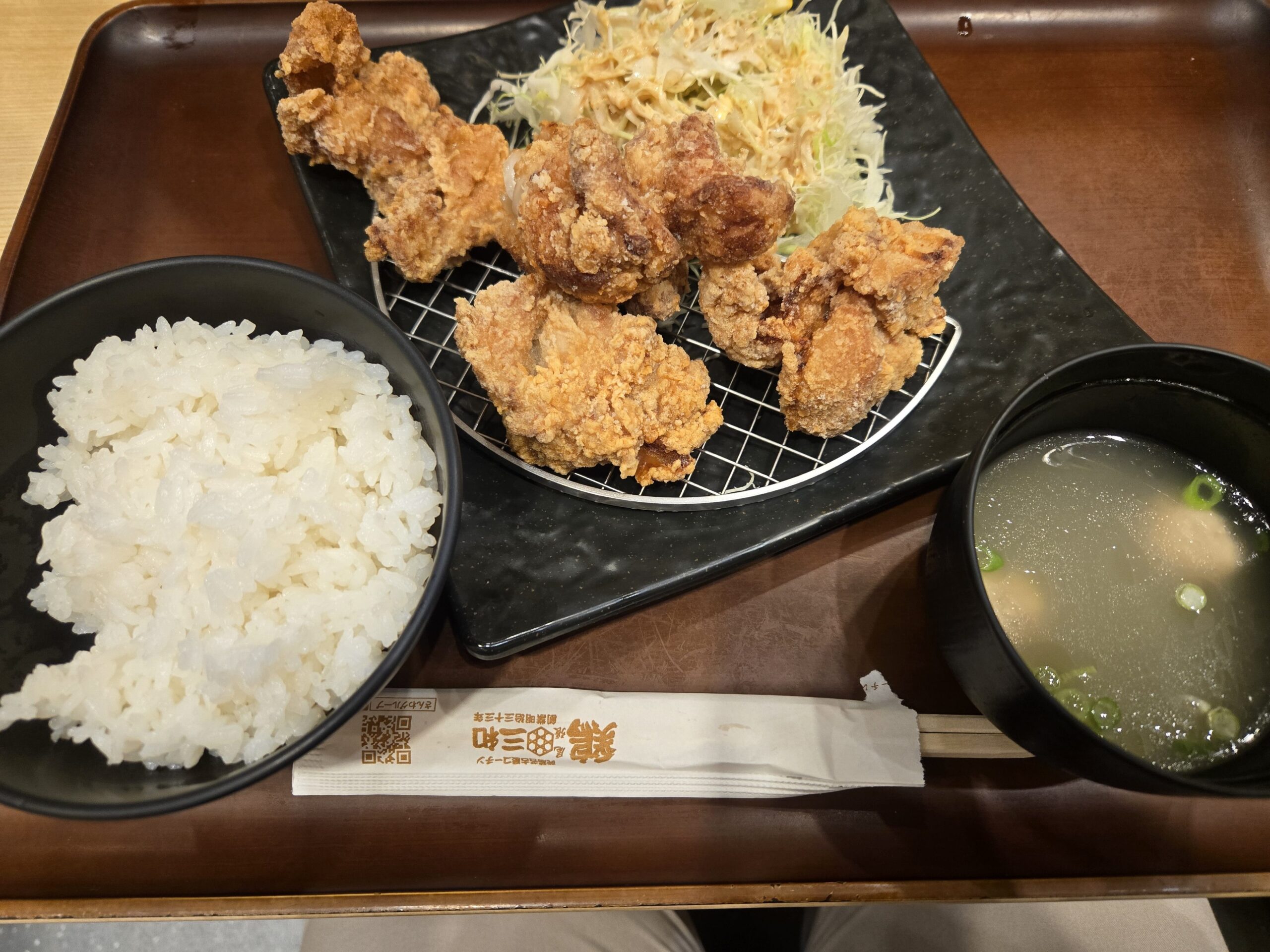 鶏三和は各地に店舗があるが、どの店舗でも鶏スープが付くのが地味にありがたい。優しい味で、唐揚げとの相性も良好である。